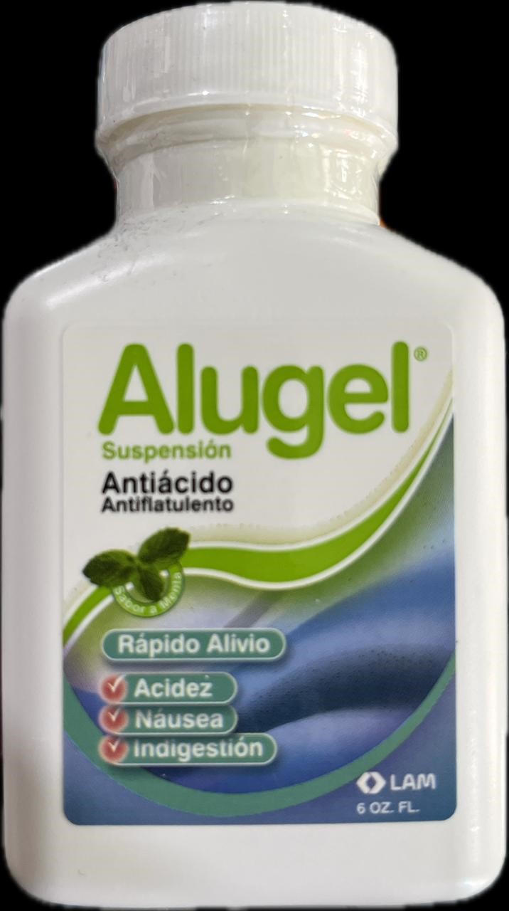 ALUGEL EN SUSPENSION. ALUSIL. FRASCO 6 OZ. ANTIACIDO. ANTIFLATULENTO. ALIVIO RAPIDO PARA LA ACIDEZ, NAUSEA E INDIGESTION.